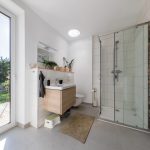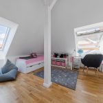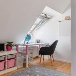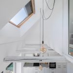 Fereastra de mansardă VELUX montată aici oferă o distribuție îmbunătățită a luminii naturale, pe toate nivelurile, și o aerisire eficientă – aerul umed este evacuat pe aici, în timp ce aerul proaspăt intră în locuință prin ferestrele și ușile deschise.